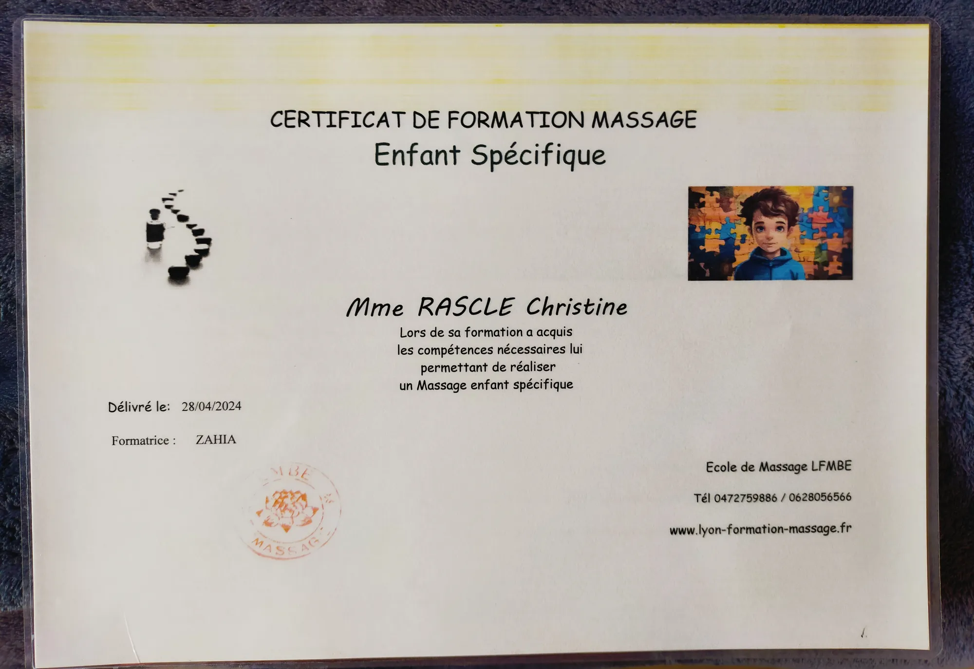 Je me présente, Christine, thérapeute certifiée en bien-être et relaxation. Après 21 ans au CHU de Saint-Étienne et 16 ans en structure petite enfance, j’ai enrichi mon parcours pour proposer des soins adaptés à tous, de la naissance aux seniors.